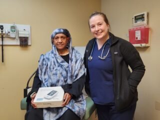 Another program that Dr. Kocsik has become passionate about involves distribution of self-monitoring blood pressure cuffs as part of the Million Hearts Program. On the day of our interview she provided a cuff to Jaheda Begum (pictured above). Like many of our providers, she is finding that patients are enthusiastic about being able to monitor their blood pressure at home and have their numbers transmitted to their provider. She enjoys educating patients about their hypertension and pointed out that some patients’ blood pressure begins to increase as early as their 30s and that they may not understand why managing their hypertension is important, even at a young age, in preventing the long-term risks of stroke and heart attack.
